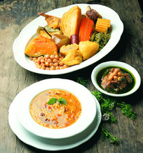 Auch das Gemüse stellt ein wichtiges Element der Küche der Kanarischen Inseln dar, dank der Vielfalt und Qualität, denen sich der Gemüseanbau hier seit jeher erfreut hat. Ein vorzügliches Gemüsegericht ist der Puchero, wohl eines der besten aus der reichen Zahl spanischer Eintopfgerichte, schon wegen des ausgezeichneten Verhältnisses von Fleisch und Gemüsesorten. Im Gegensatz zum "cocido madrileño", dem typischen Madrider Eintopf, in dem das Fleisch und die Kichererbsen dominieren, sind im "puchero canario" neben dem "majado" (einer Masse aus zerdrückten Tomaten, Zwiebeln, Kräutern und Gewürzen), Rind-und Hühnerfleisch, Wurst, z.B. chorizo (Knoblauchwurst) und Speck, die Gemüse das bestimmende Element: Kohl, Kürbis, Kartoffeln, Süsskartoffeln, Karotten, weisse Bohnen, Maiskolben und wenig Kichererbsen. Auch Früchte, wie etwa Birnen kommen als Zutat in Frage. In manchen Rezepten werden sie beim letzten Aufwärmen hinzugegeben, doch gelten sie nicht als essentiell, da ja bereits die Süsse einer guten Süsskartoffel für Reichtum und Vielfalt des Geschmacks bürgt. Serviert mit Essig, Öl und Paprika bedarf es keiner weiteren Beilagen, denn der "puchero" ist ausgesprochen reichhaltig.